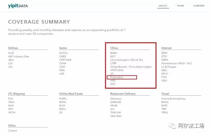 下面这家数据分析公司,更是覆盖多家已经上市的中概股,其中就包括刚刚登陆美股的拼多多(NASDAQ:PDD)的数据。