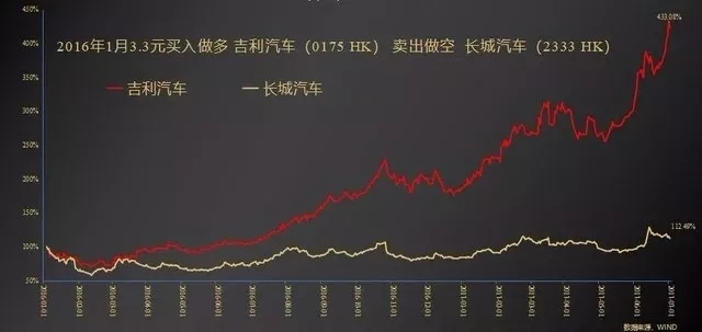 类似的例子,还有做多吉利汽车(HK:00175),做空长城汽车(HK:02333)。
