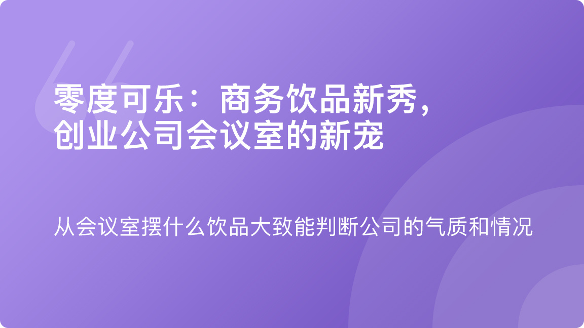 会议室里摆一堆农夫山泉似乎没什么特色,摆一堆百岁山有点老气横秋,摆一堆红牛看起来用力过猛,而零度可乐就显得又作又细腻,年轻又贴心,充满时代弄潮儿的气息,并且只发生在 C 轮融资以前的公司。