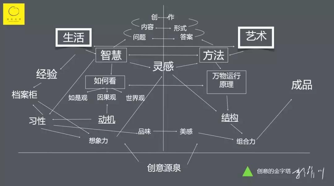 我把这个机制叫做创意金字塔。如果你想做一个有创意的人,你就一定要先去了解你脑子里装的是什么,你才可能有相应的创意。