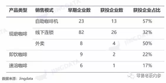 连咖啡、瑞幸咖啡的迅速崛起,仅是互联网咖啡市场演进的一个缩影。根据Jingdata数据显示,咖啡行业早期下游企业达128家,其中现磨咖啡企业占据绝对多数,且自助咖啡机、外卖等相应获投企业占比均达到50%,资本市场一派热闹景象。