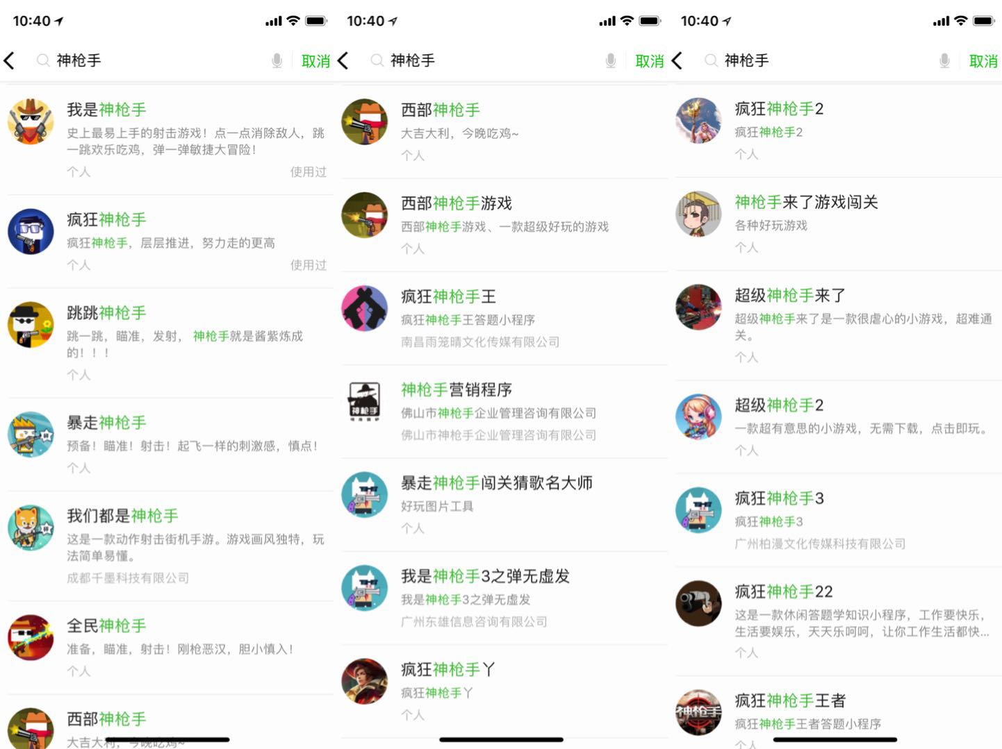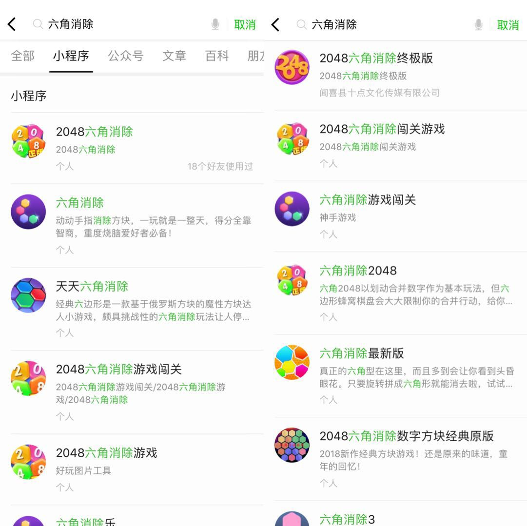 但当记者在微信搜索栏中输入两款热门游戏的关键词时,同类游戏多到一时竟加载不完。