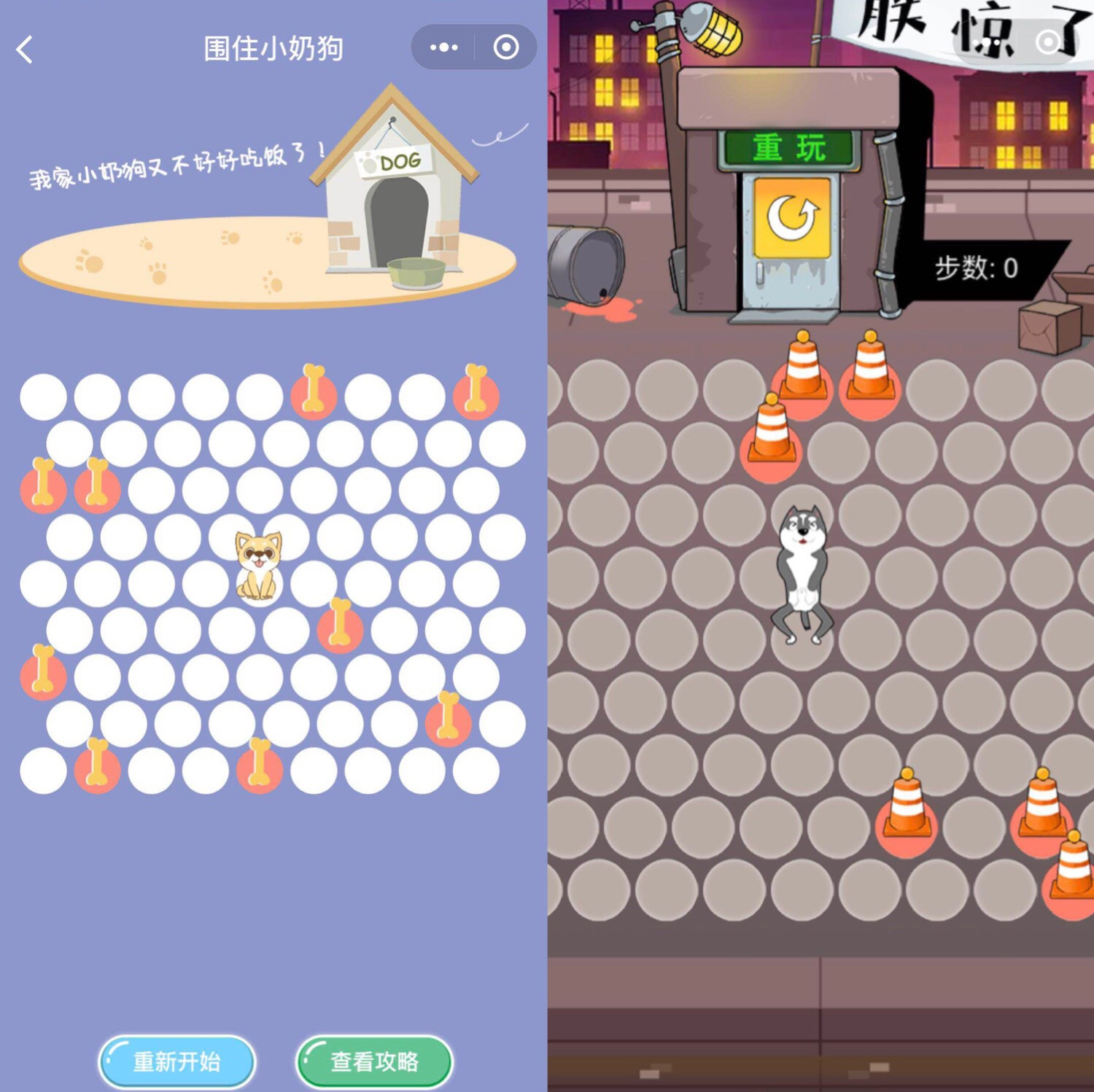 《围住小奶狗》和《围住震惊狗》