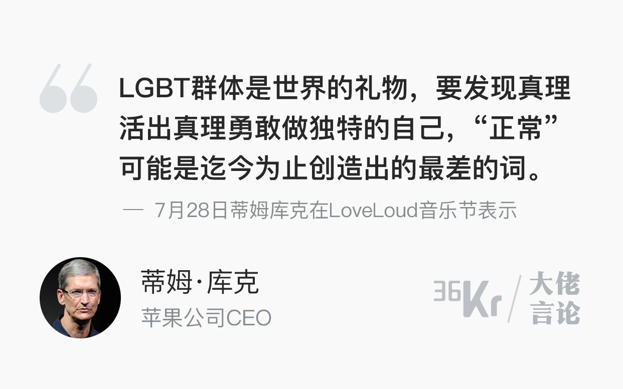 大佬言论 | 蒂姆·库克:LGBT群体是天赐之礼