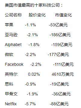 美十大科技股市值周一蒸发827亿美元,亚马逊微软领跌