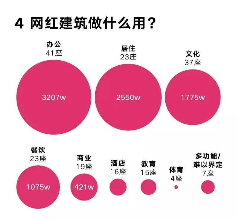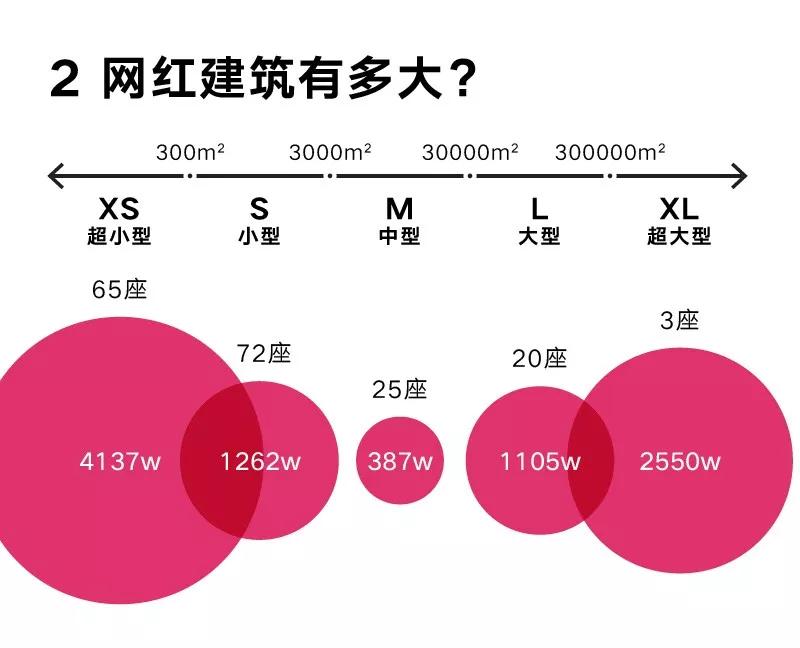 印象中的网红建筑往往都是“小房子”,但我们发现,在网络上仍然是“大房子”更容易引起关注。不过,“小房子”中也的确涌现了很多网红建筑,相比之下,反倒是中等规模的建筑显得很低调。