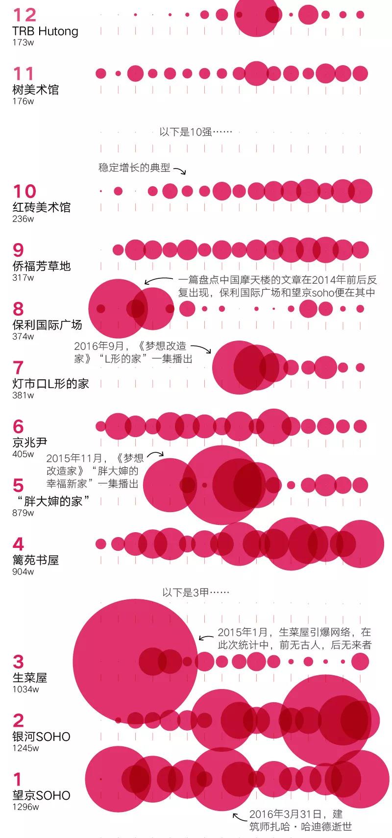为了理解建筑“网红”的时效性,我们的统计数据以季度为单位: