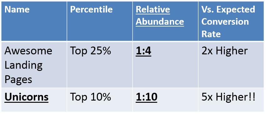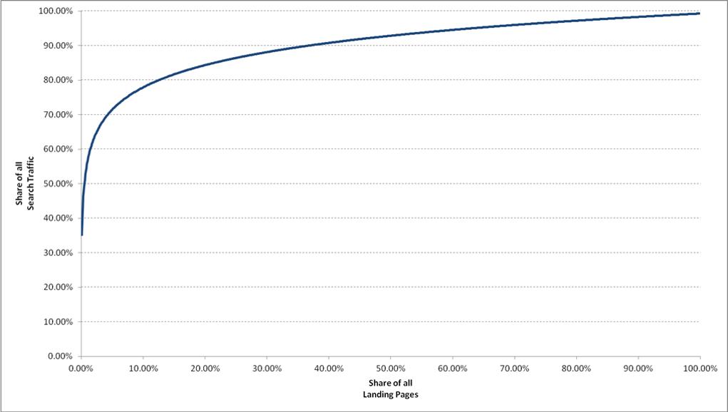 下面的例子中,我们测试了1000个电商着陆页,发现80%的流量集中在10%的着陆页上: