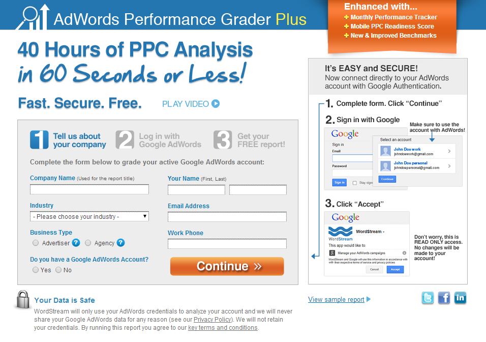 我们的方法是免费的AdWords分级器,它实际上提供给用户一个帐户评估报告,并提出建议,帮助用户改进使用AdWords的策略,这对我们来说是一个巨大的转折点。