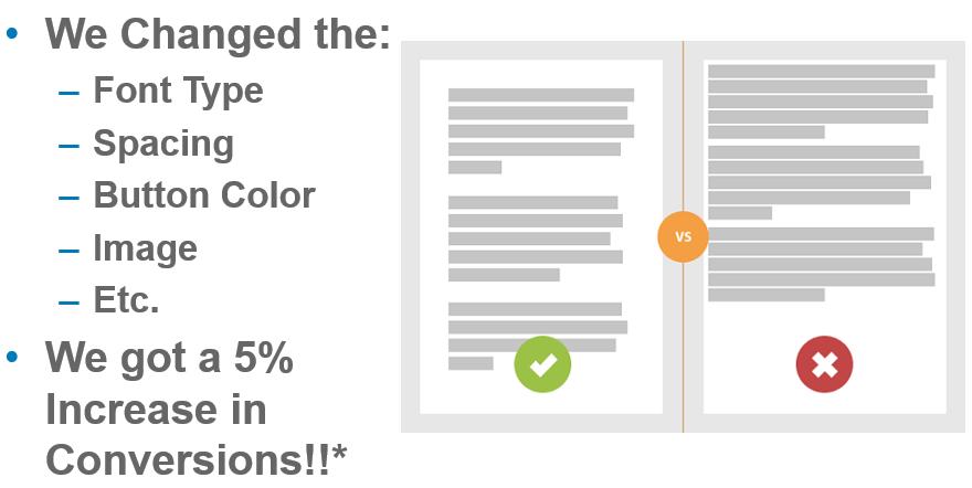 他们分享了一个例子,其中大师改变了按钮颜色,或者字体间距,或者banner图。然后摆出增长数字,付费广告的转换率提升了2—7%。