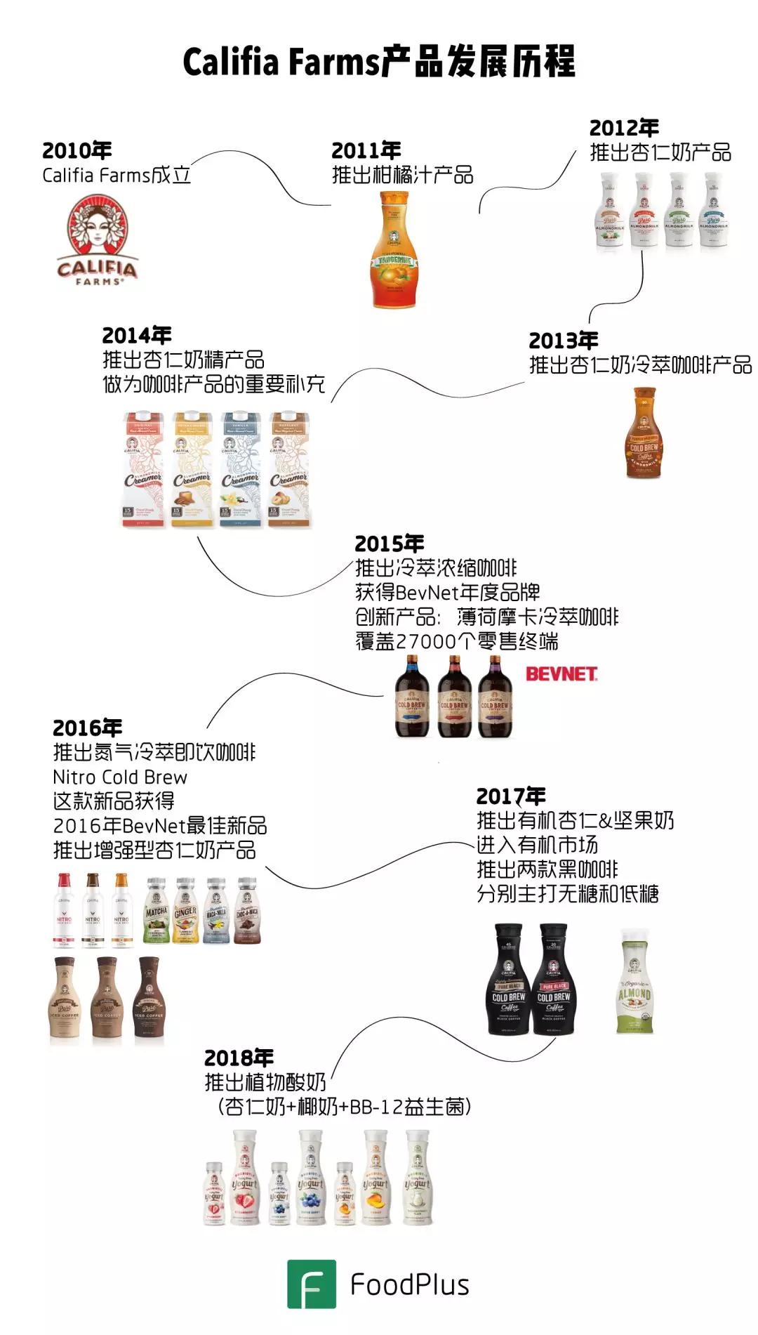 做为一家2010年成立的公司发展到现在差不多8年时间,称得上是取得了非常优异的成绩,所以我们想结合Califia Farms的发展历史、市场环境以及结合产品、渠道、供应链、品牌、资本等方面来分析这家公司取得好成绩背后的原因。