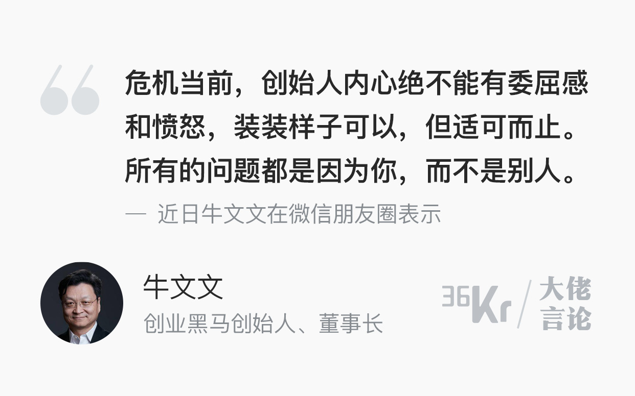 大佬言论 | 牛文文:创始人没资格委屈,公司危机只怪自己