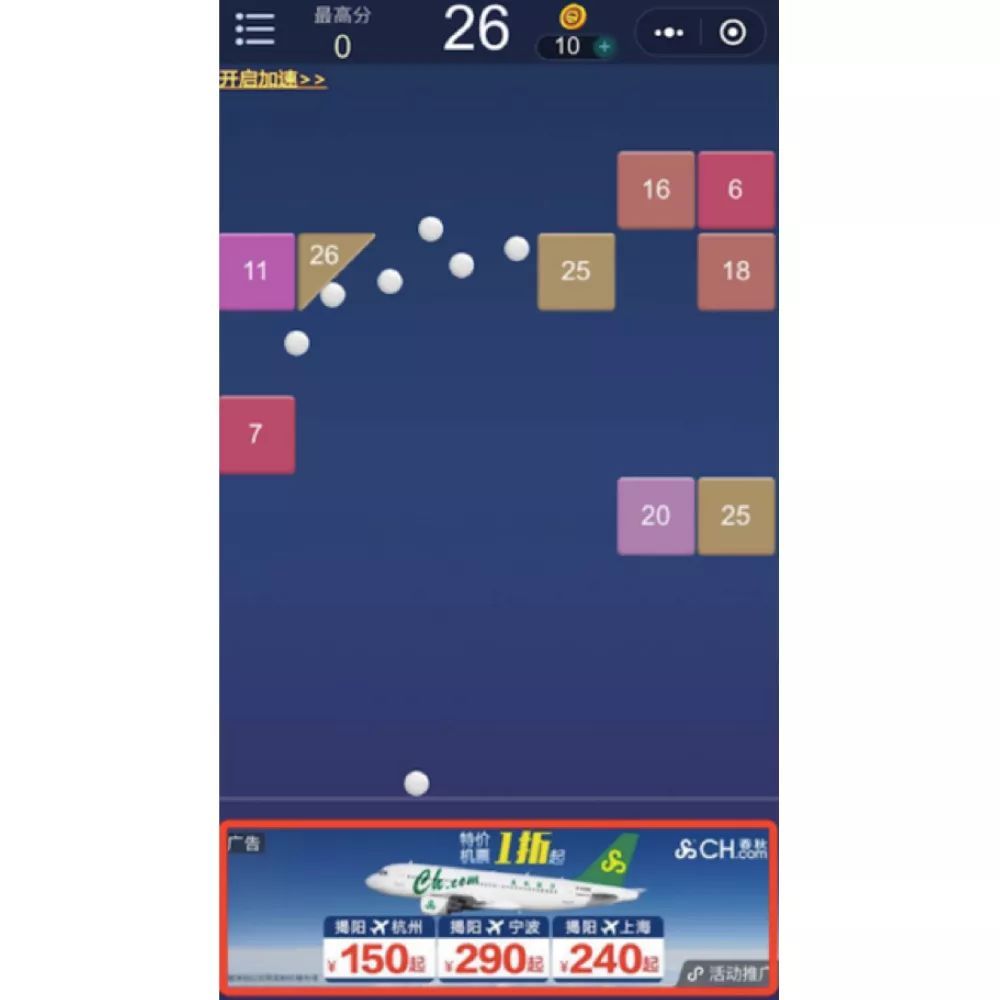 耐克花了 2000 万买下了《跳一跳》3 天的基座广告震惊过不少人。这种品牌植入应该是小游戏最理想的广告变现形式,游戏只负责曝光,不需要对效果负责。当然这类广告对游戏的活跃用户数要求极高,广告主以倾向于做品牌宣传的大公司为主。