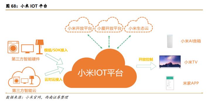 小米则在智能手机业务取得巨大成功拥有客流量后,将智能硬件的触角延伸至更多领域,借助生态链投资模式打开了 IOT 时代的万物互联之门,也打开了小米成千上万的硬件流量入口从而吸引消费者拉动营业收入,刺激更多供应商提供物联网商品。