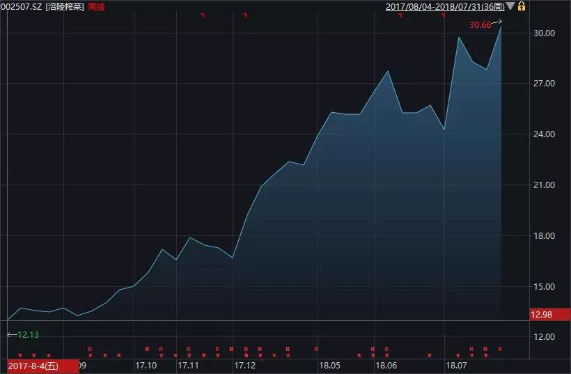 看看股市,康师傅、涪陵榨菜的走势确实很猛。