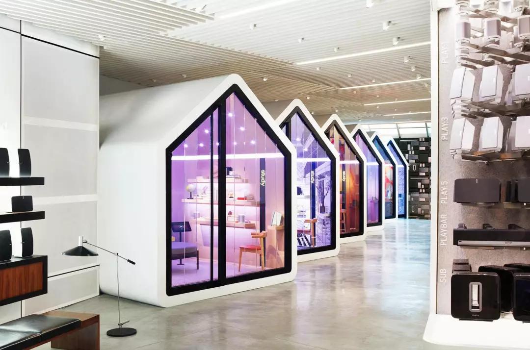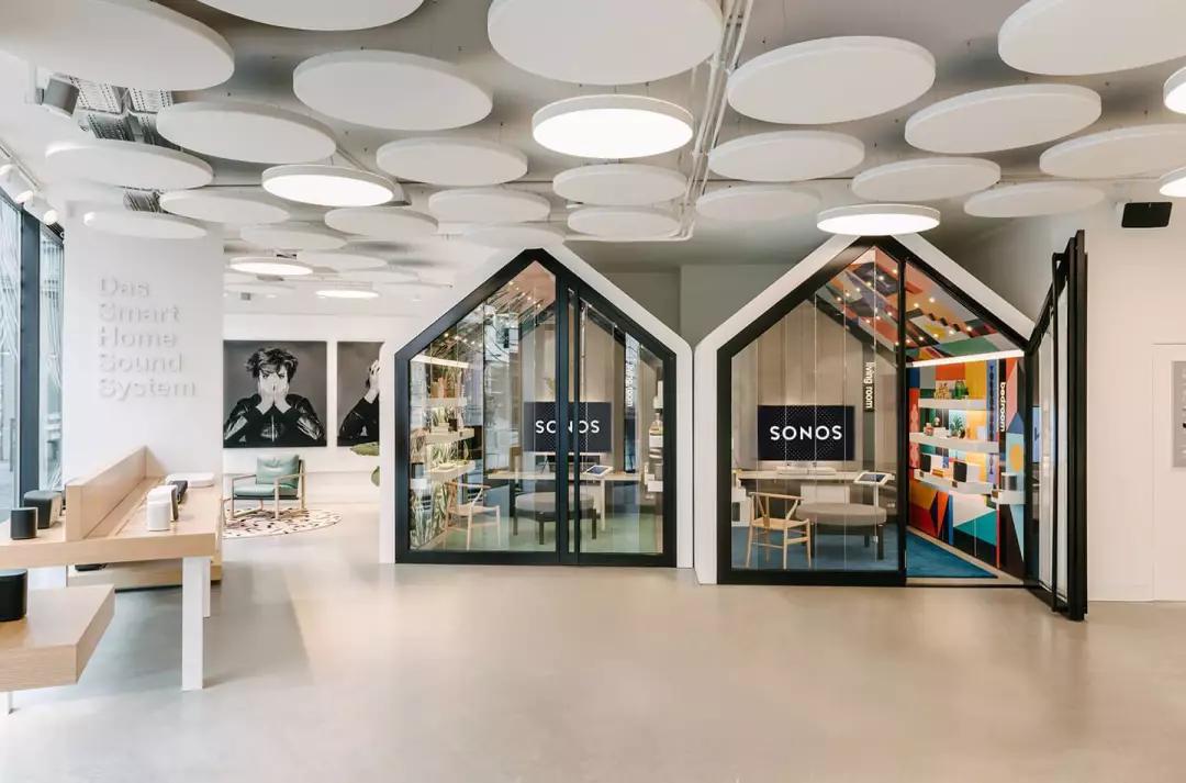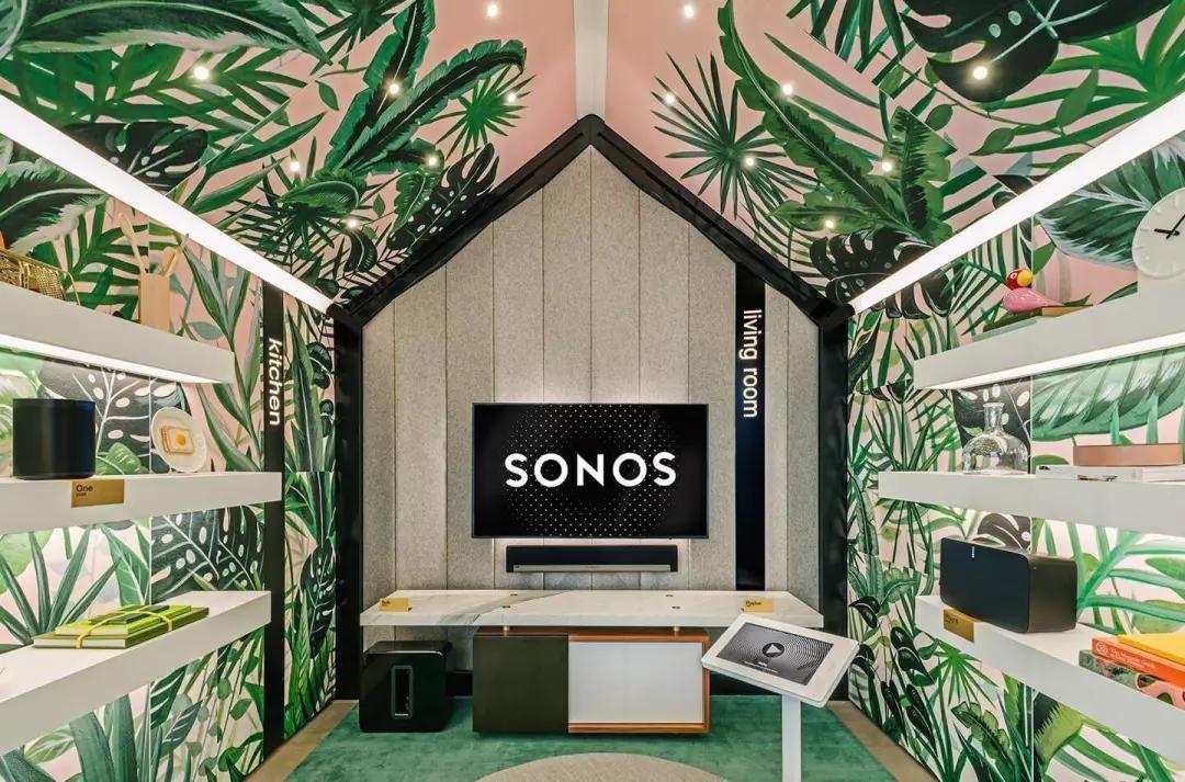 并且,跟大多数科技产品公司不同的是,Sonos 的产品很少,只有十件左右,与此同时,它的使用环境和场景却受限制——实际上,它就是给人们在自己家里使用的。所以,如何再造家庭环境,并把它和谐的融入零售空间,成了是 Sonos 的最大课题。