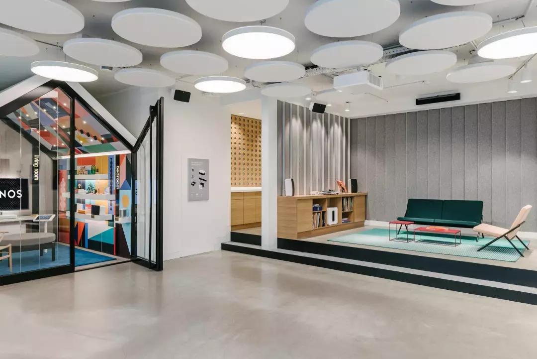 Sonos 的第一家旗舰店是2016年开幕的,此前,品牌花了两年时间研究零售店的模型。Sonos 知道自己的产品有一定的学习门槛,而且发现很多人是在朋友家初次体验过它的妙处之后,才决定购买的。针对这种结果,他们希望能够在门店里既能完成“教学展示”的目的,也能完美再现家庭环境。