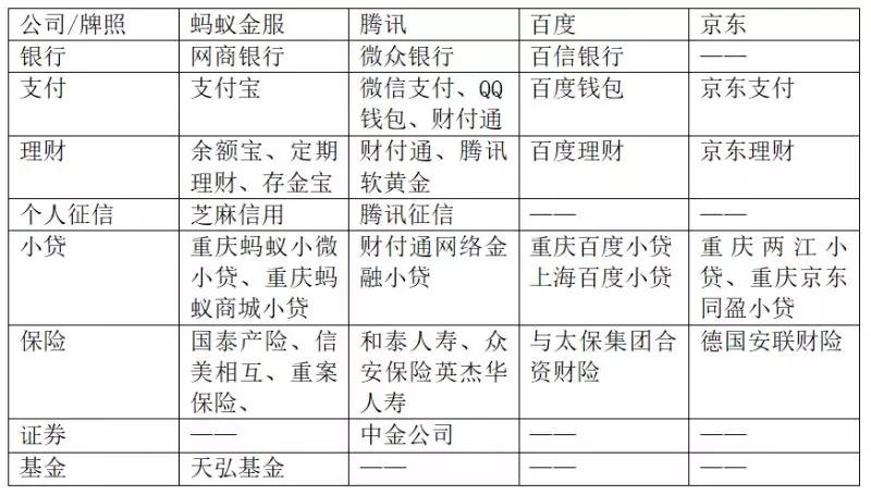 上图是截止2017年年末,BATJ四家企业在金融领域主要业务布局的不完全统计,可以看出,百度在牌照方面也是尽可能地在拿,对于比较难拿的也不止百度一家没有拿到。