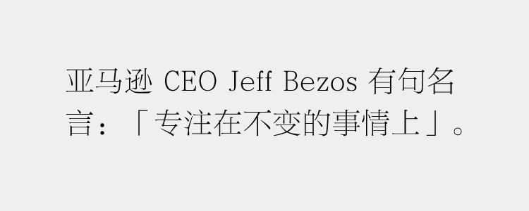 亚马逊 CEO Jeff Bezos 有句名言:「专注在不变的事情上」。人们和企业遇到的问题并不经常改变,而它们的解决方式几乎每年都在变化。因此,做人们想要的产品应该从「人们想要的东西」开始,而不是那些更具吸引力的「我们可以制造的东西」。