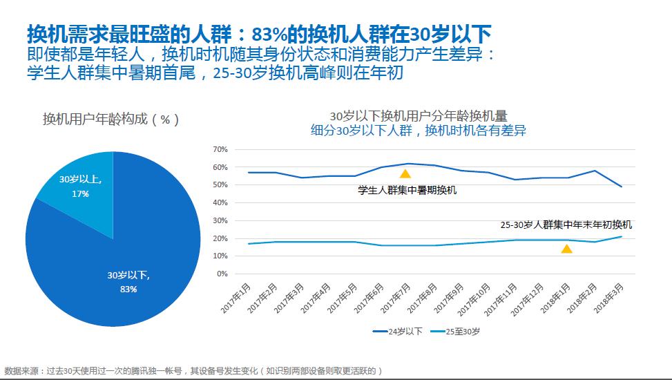 第二是30岁以下年轻人是换机主流群体;