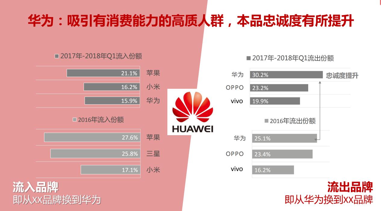 对于厂商来讲,用户忠诚度是一个关键指标。在这一项上,华为是所有手机中表现最为突出的一家,吸引有消费能力的高质人群,忠诚度不断提升。懂懂认为,这与华为手机在研发上的长期积累与多产品策略相关,这些长期研发投入的价值正在通过高品质的产品展现出来,相比其它品牌,在技术上、品质上更能赢得用户信任。