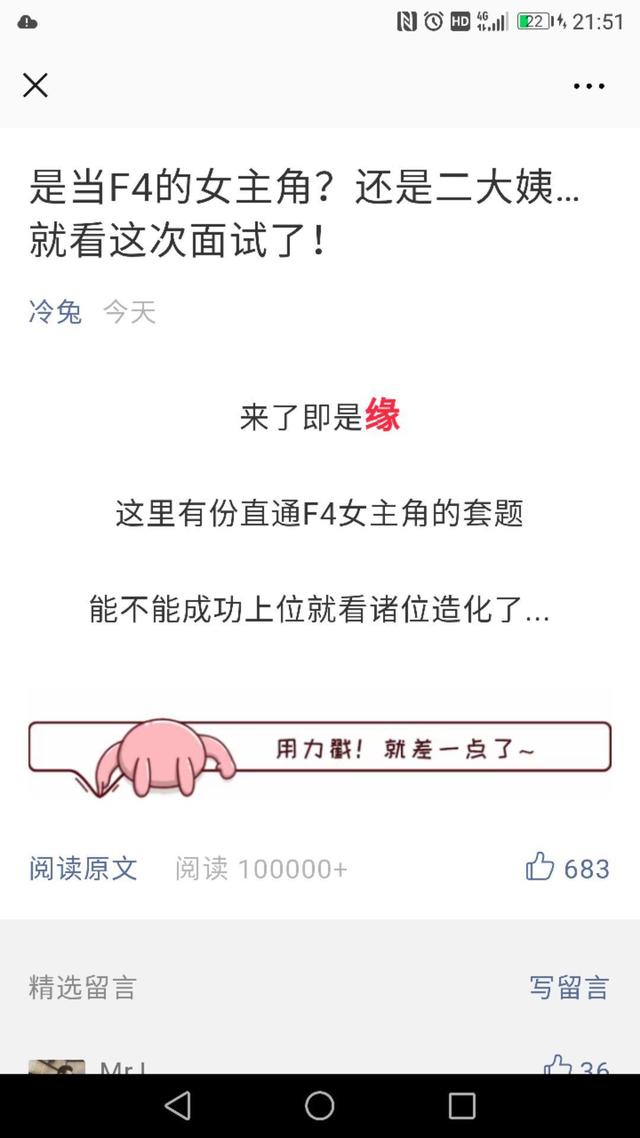 之后几天,又发布了一支互动H5,围绕新F4打造的漫画女主招募的H5,同样是通过新F4团员在TVC视频,跳转至漫画女主的招募页,通过测试答题来获取漫画面试的角色身份,完成了明星粉丝向平台漫画用户的转化。