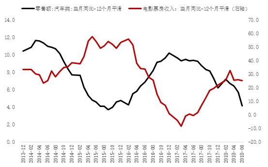 4、当前火爆的“粉丝经济”或能“管中窥豹”式地反映服务消费的发展。但“粉丝经济”火爆更值得思考,背后反映的是收入增速的滑落和心理落差的补偿。收入增速回落中,减少昂贵支出,更多购买“不那么昂贵、也不那么必要”的消费替代品,这也是经济学中有趣的“口红效应”。就国内情况而言,汽车零售额与电影票房的同比增速呈现出相互替代的特征,或许是中国版的“口红效应”。