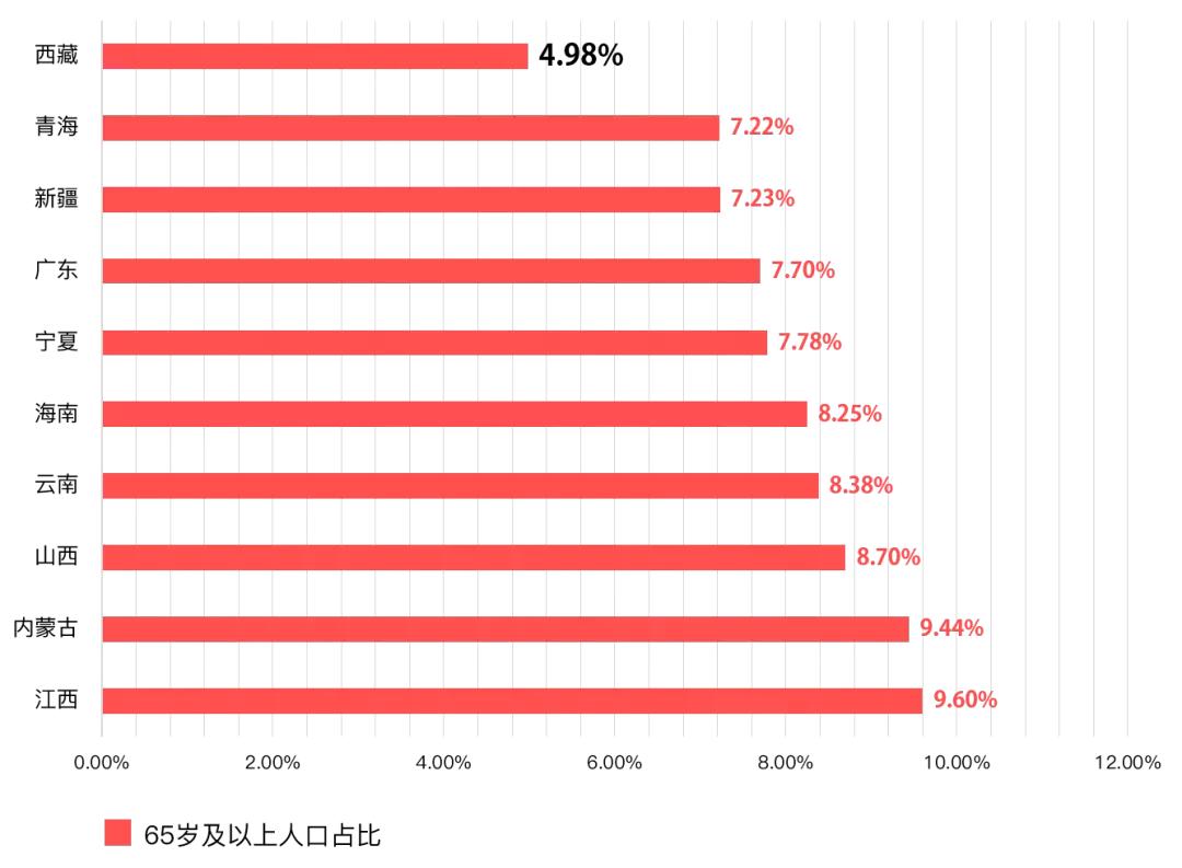 2017年老龄化最轻微的省份TOP10
