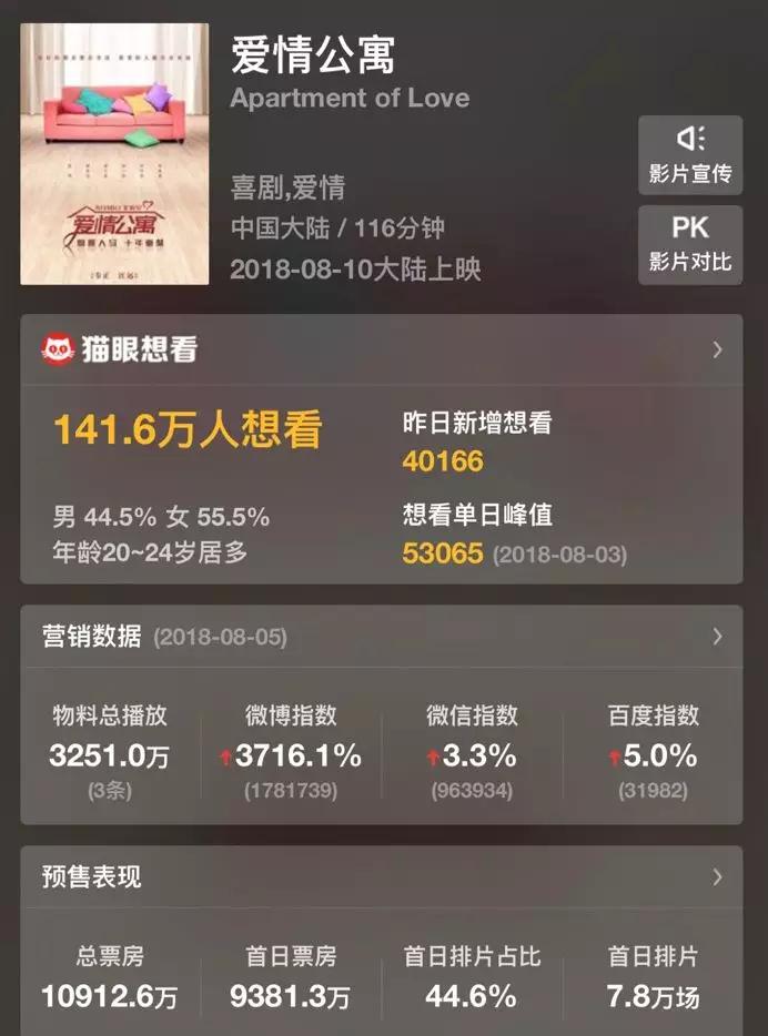 不过,虽被千夫所指,影版《爱情公寓》的映前表现出奇好。