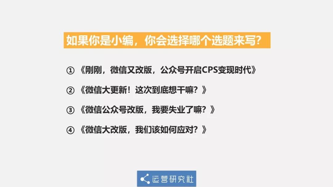 其实这 4 个选题乍一看没啥毛病,选哪个写都能蹭上当时「微信改版」的那波热点,阅读量都会不错。