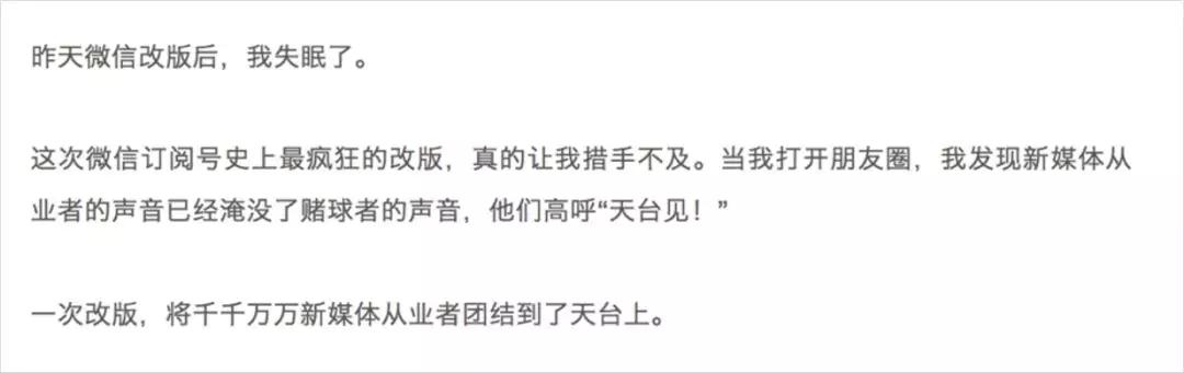 比如我们在追微信改版的热点时,正文部分有 3 个小节,一开始这 3 个小节的标题是这样的,大家一起来感受下: