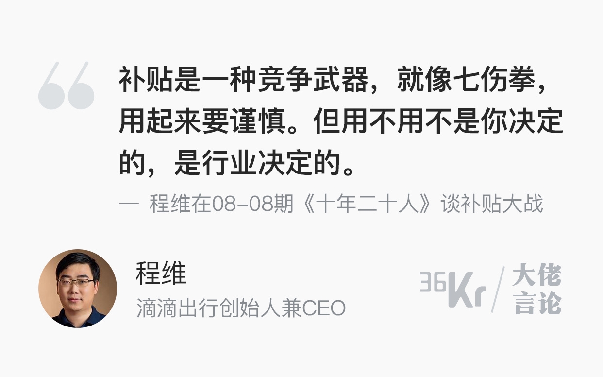 大佬言论 | 程维:补贴就像七伤拳,用起来要谨慎
