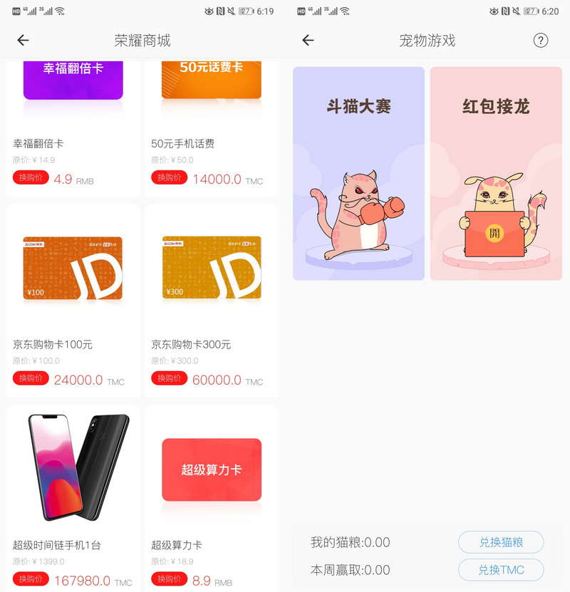 (除了用于兑换购物卡、手机和算力卡,TMC 还可以用于养猫游戏)