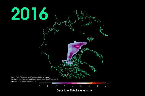 南北两极的冰层继续变薄消融,其中 2017 年北极海冰的年度最大值,是近 37 年来年度最大值里最小的。