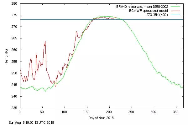 据较权威的丹麦气象研究所数据显示,暂时北极圈内北纬 80 度以北的地方,温度仍然在历史均值的正常范围内。
