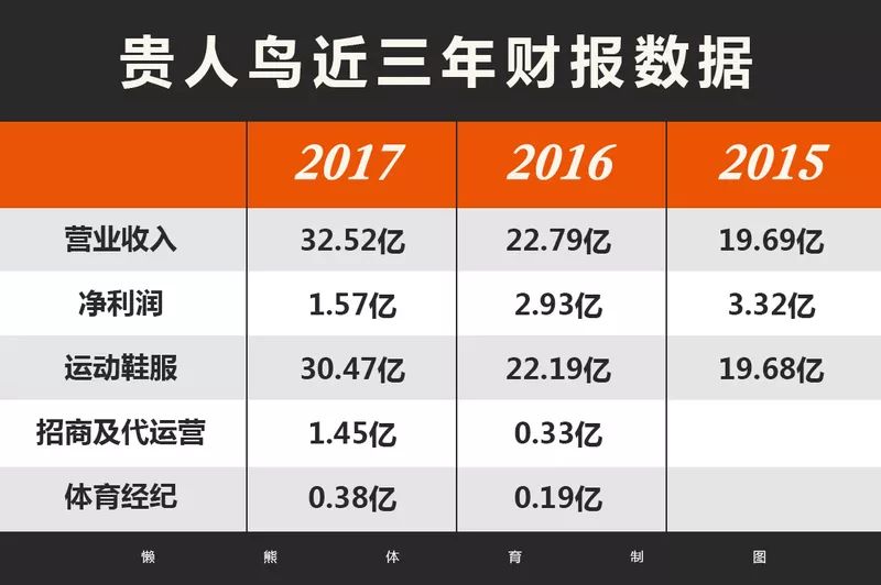 此前,在以零售为导向的业务转型带动下,贵人鸟业绩从2015年开始恢复增长,实现销售收入19.69亿元,同比增长2.57%,净利润3.32亿元,同比增长6.28%。