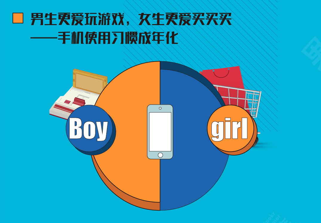 从性别差异角度来看,男生酷爱玩游戏,对其他并不十分感冒;女生兴趣点分散,游戏、八卦、综艺、购物通吃。