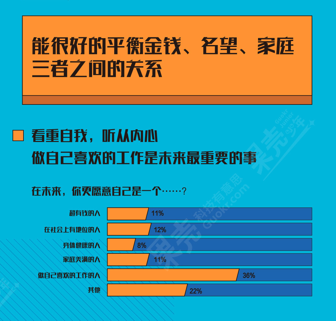 如果你在上世纪八十年的中国街头拦住一个孩子,问他长大后的愿望是什么,他多半会回答 “当科学家”;在十年前,关于青少年想要“当大款”“当大官”的新闻报道曾经引发过大面积的忧虑;而到了今天,你再问这个问题,得到的回答可能是“做自己喜欢的工作”“身体健康”“家庭幸福”……