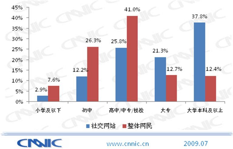 2009 年 CNNIC 报告 社交网站用户学历结构