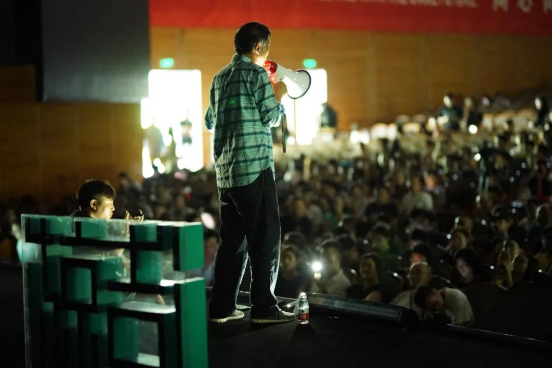 停电中,王坚博士拿着小喇叭演讲