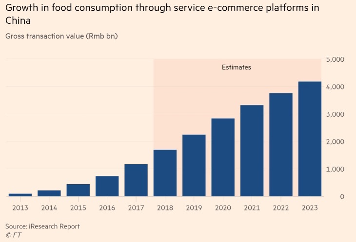 《金融时报》刊文称,为了争夺中国外卖市场的主导权,阿里巴巴和腾讯分别投资了饿了么和美团点评。为了吸引顾客,饿了么和美团投入巨额补贴,导致公司亏损加大,引发投资者的担忧。另外,外卖包装造成了环境问题,塑料堆积如山。