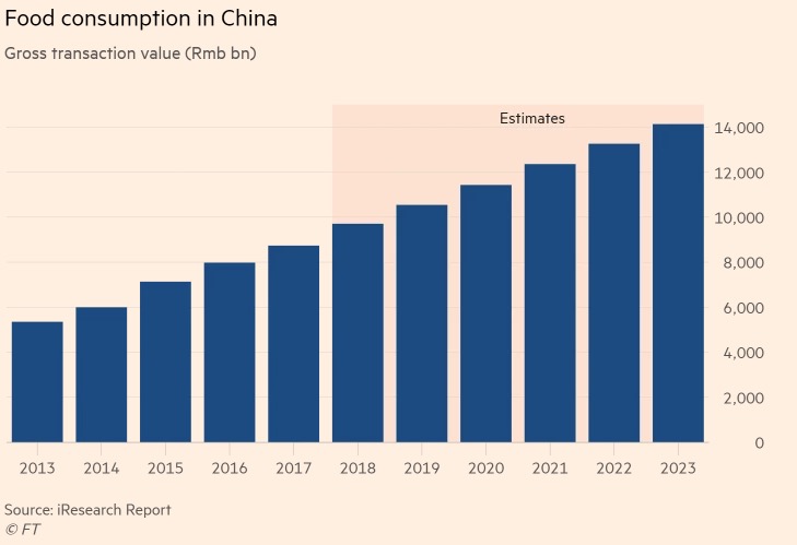 中国外卖食品消费增长迅速