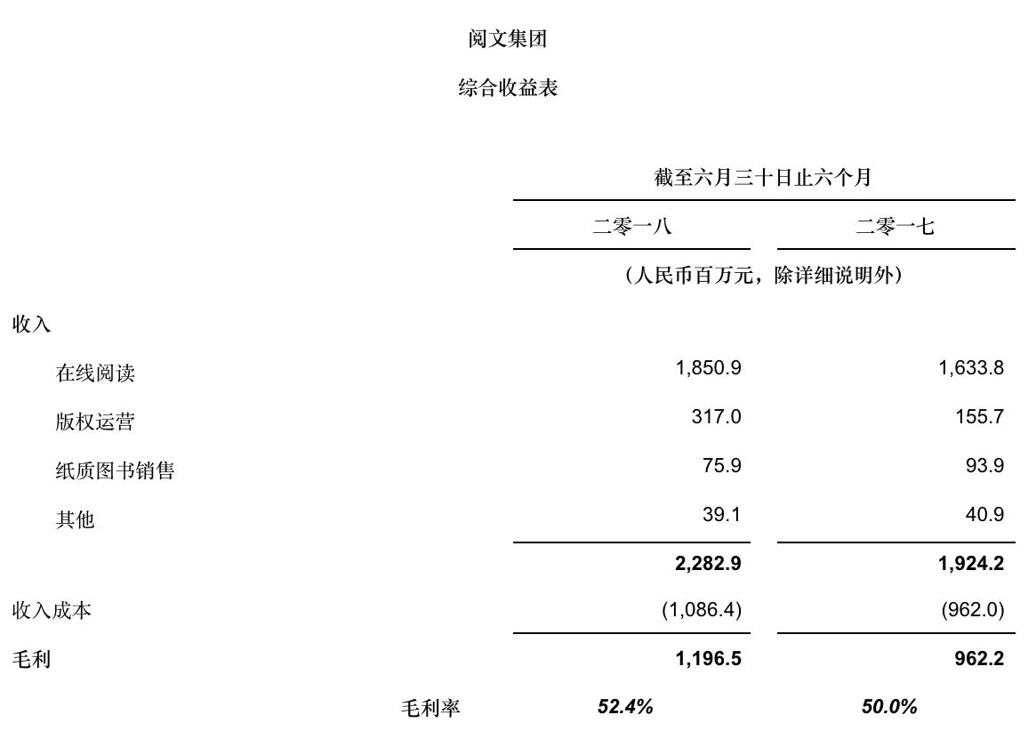 数据显示,阅文上半年总收入22.829亿元,同比增长18.6%;经营盈利5.674亿元,同比增长142.2%;期内盈利5.043亿元,同比增长136.2%。