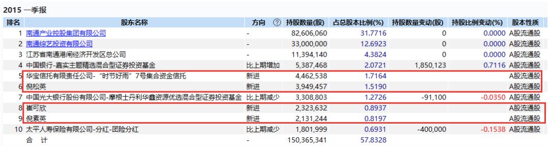时间回溯到2015年一季度,精华制药一季报显示,“时节好雨”7号、倪松英、倪素英和崔可欣成为精华制药新晋10大流通股东。