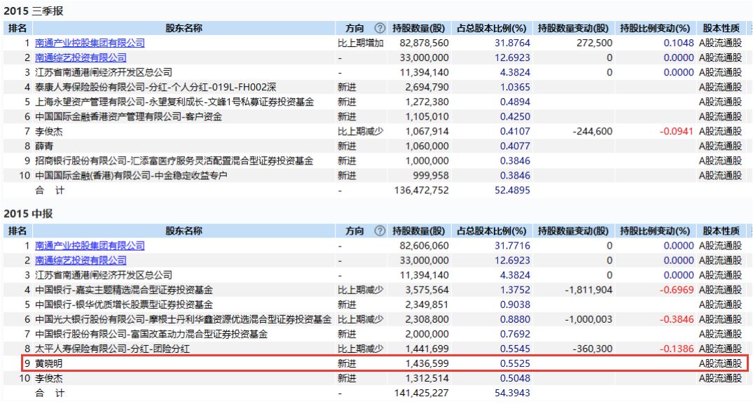 而在精华制药2015年半年报中,前述4个账户均退出十大流通股东行列,转而出现的"黄晓明"账户,排在十大流通股东第9位。