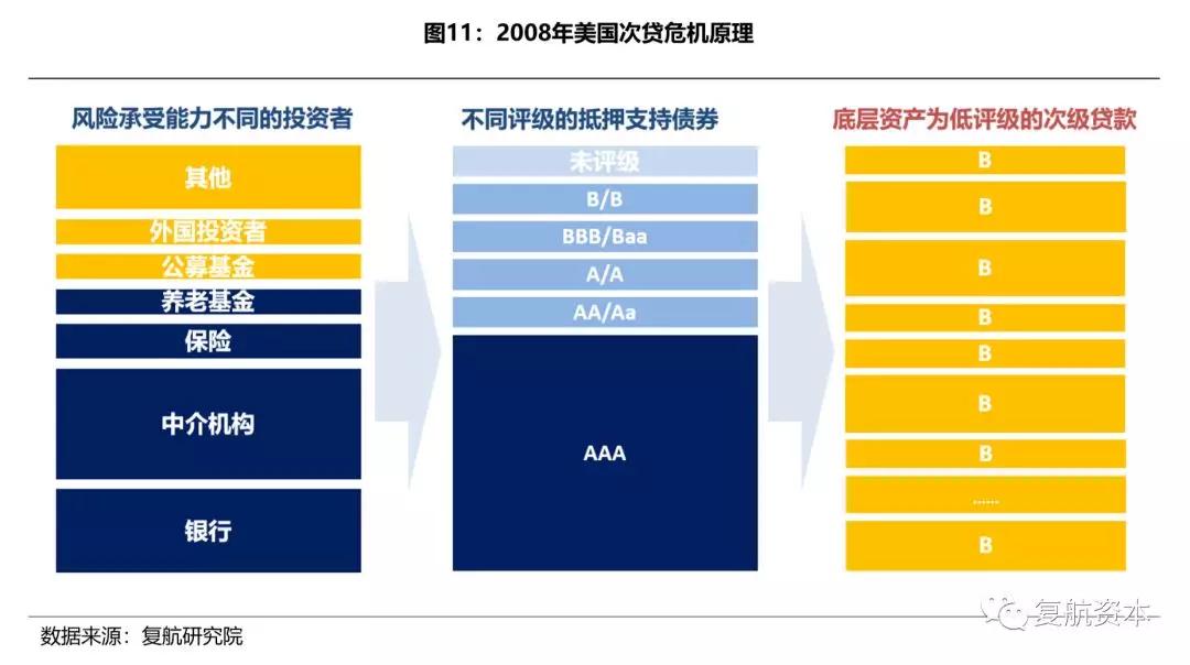 这种优先收益资金和高风险资产的断层也曾在美国发生:投行把资金端划成不同风险收益等级的资金池,但实际上在资产端,却造成了大规模的风险收益错配。央行加息把泡沫捅破造成了08年的次贷危机,浮动利息的次贷违约率最高达到40%。