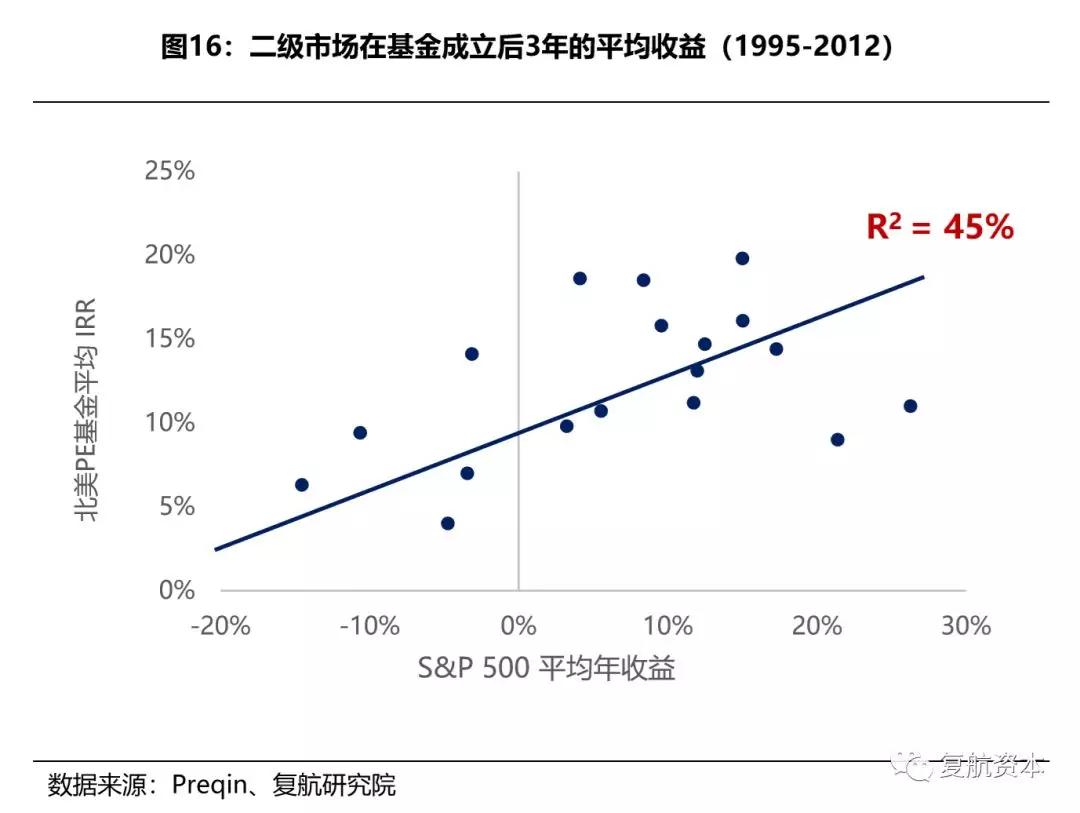 这种一、二级市场的联动性也会对基金业绩造成影响:除了估值以外,一级市场的退出也会受二级市场波动影响(包括IPO退出)。据我们对比统计,一二级市场回报关联性高达45%。