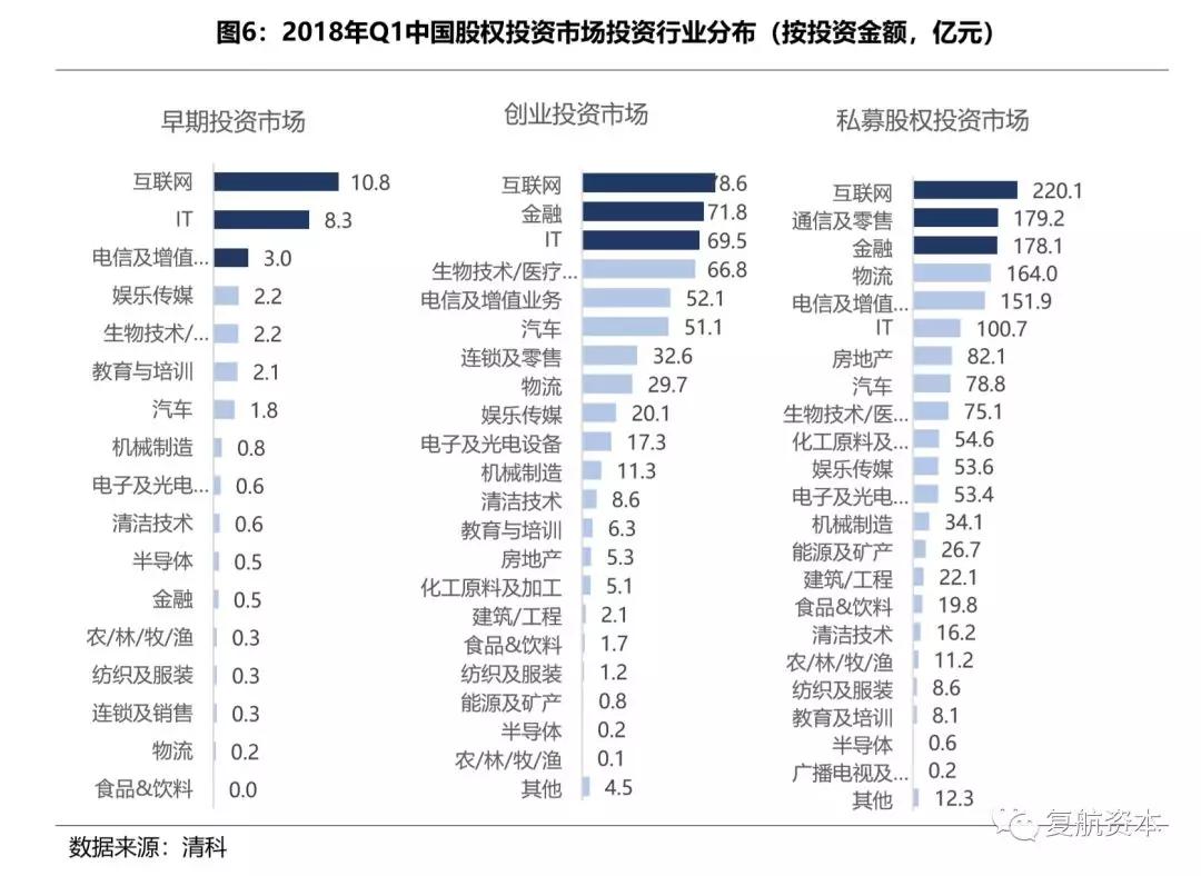 一、二级市场行业分布的断层是造成退出慢的原因之一。中国一级市场以早期投资项目为主,创投和成长资本约占整个一级市场总投资额的75%。中国一级市场的资金集中在新经济和泛科技领域,热门行业包括互联网、金融、连锁及零售和物流等。