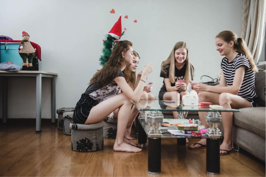 (图说:闲暇之余,模特们会在出租屋里一起打牌。)