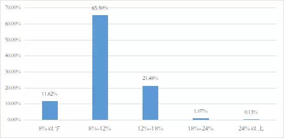 图8中国P2P收益率集中于8%-12%区间,占比高达65.50%